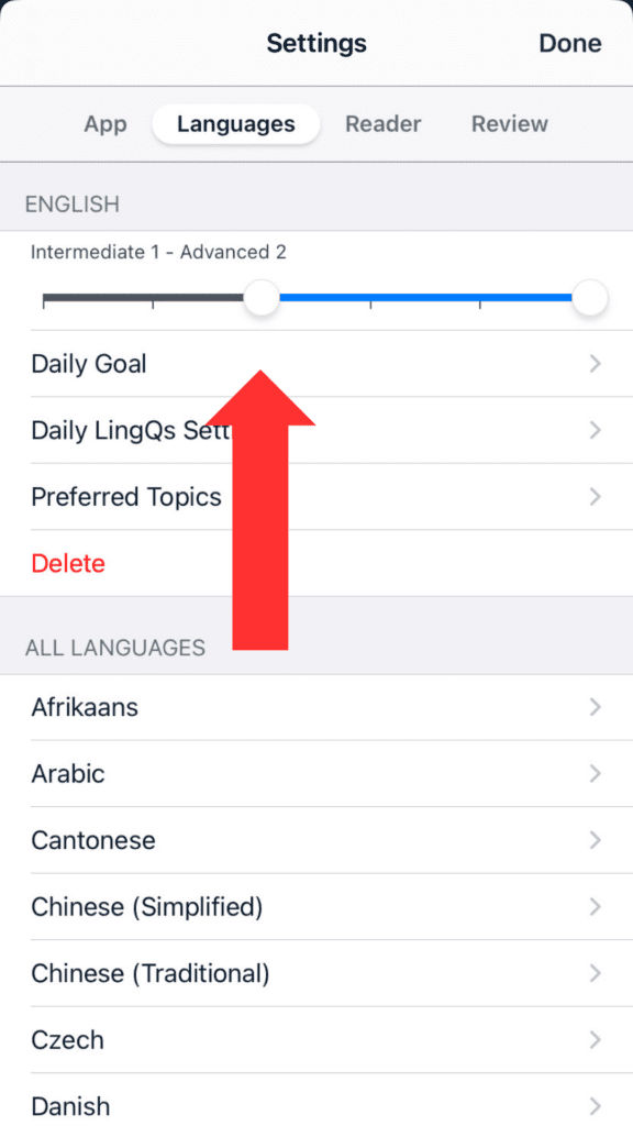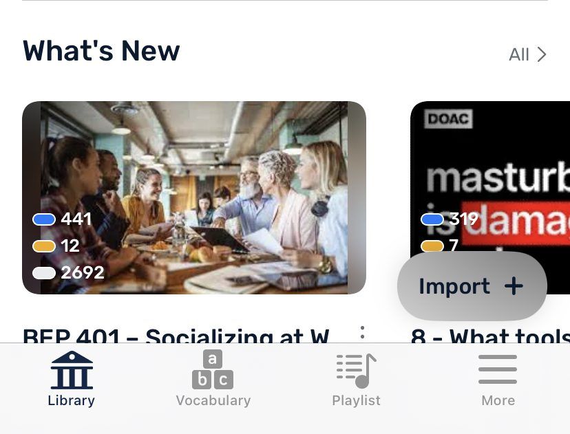 1. Take a look around in your target language library at content in the intermediate to advanced range. You can find the option to change the level range in Settings on iOS and Android and at the top of the Library page on the web.