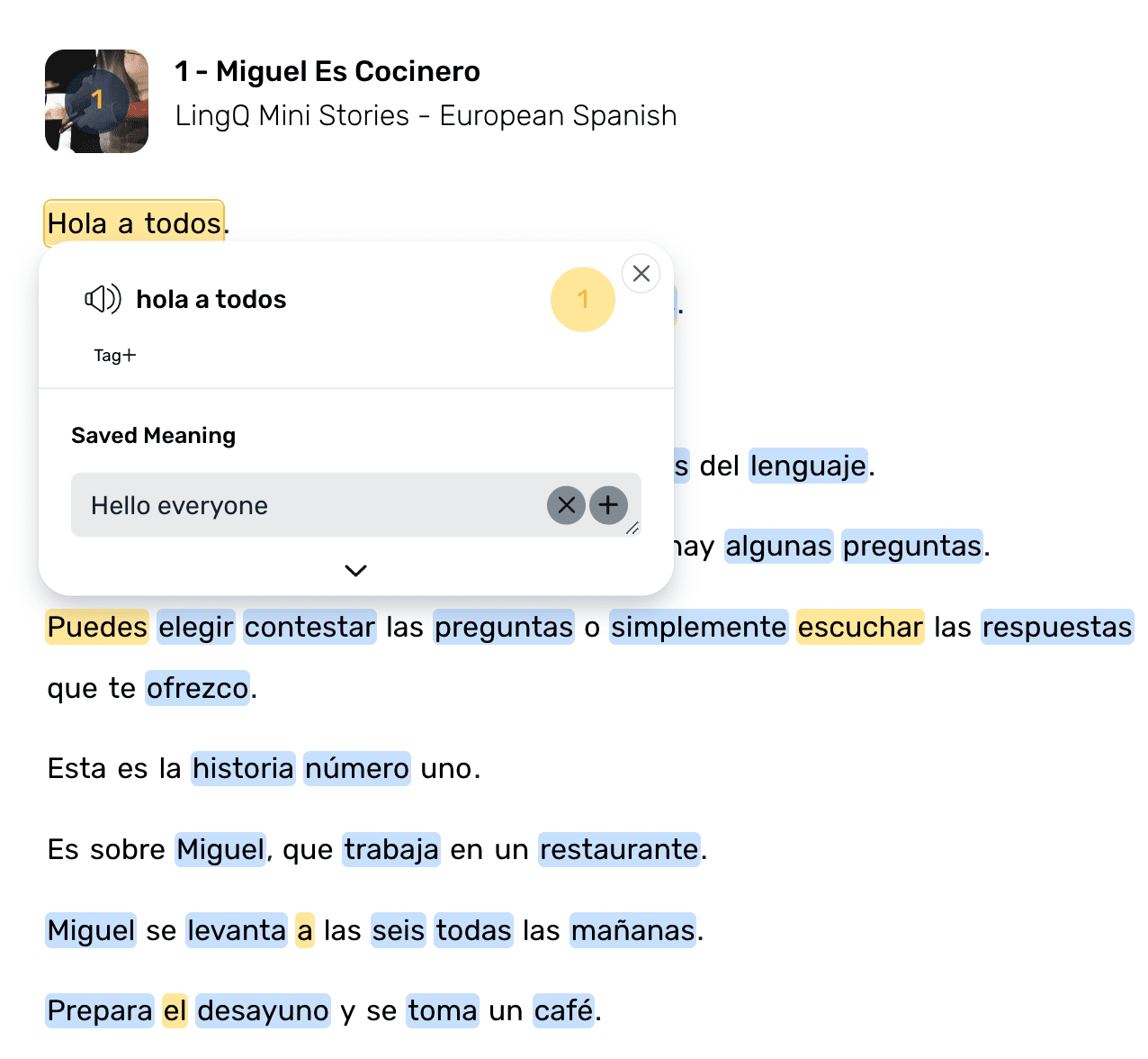 Looking to further improve your Spanish skills? LingQ is the best way to learn Spanish online because it lets you learn from content you enjoy! You can import videos, podcasts, and much more and turn them into interactive lessons. Keep all your favourite language content stored in one place, easily look up new words, save vocabulary, and review. Check out our guide to importing content into LingQ for more information.