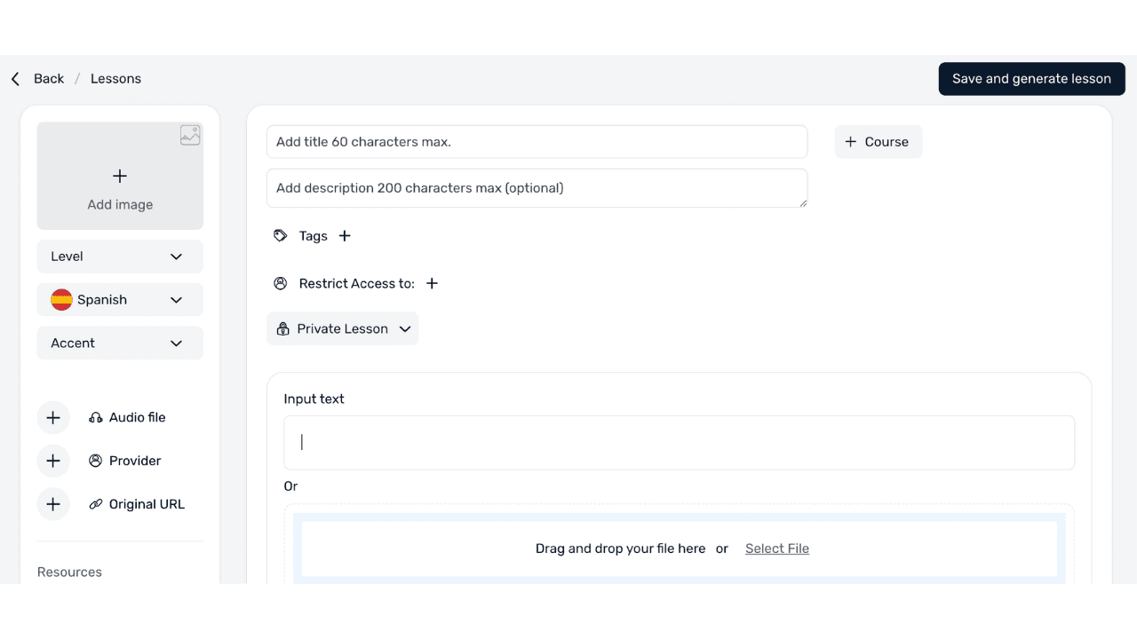 Once you’ve hit save, you can open your lesson and start practicing Spanish by reading, listening, and reviewing (all in one platform).